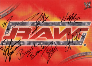 (6)WWE Raw Autograph Mat has the signature of Fit Finlay, Jerry Lawler, Jamie Noble, & Carlito.
