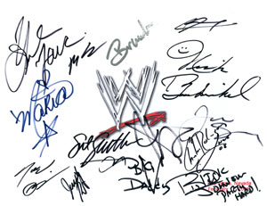 (1)WWE Autograph Mat has the signatures of Jerry Brisco, Matt Striker, Mitch & Nicky from the Spirit Squad,
